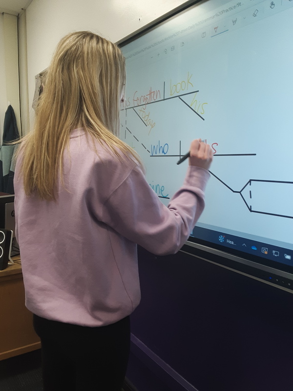 DHS English teacher, Mrs. Hansen, requested one of the new boards to enhance her classroom. “My students use the screens to complete our daily grammar practice. They enjoy writing on the screen and having so many color options.”